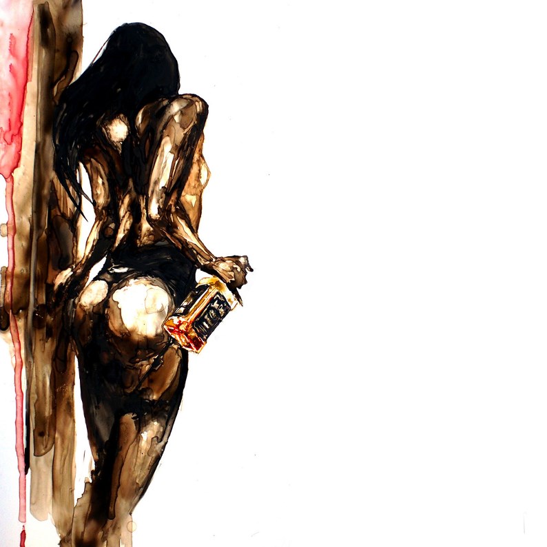 Ses amis l’appelaient ″ Youngluck ″ (chanceux). Fils de père philippin et de mère métisse, Orpilla a grandi dans les mauvais quartiers d’Oakland. A l’âge de 17 ans, lors d’une fusillade il est blessé à la nuque et à 21 ans il prend une balle dans le bras au cours d’une bagarre. En 2006, sa petite amie rompt et disparaît avec son fils de 3 ans, Orion. Déprimé, ″Lucky″ sombre dans la paranoïa et la drogue.Plus tard, se fait piéger et arrêter en possession de 110.000 dollars destinés à l’achat de 7 Kg de cocaïne. Incarcéré dans un pénitencier fédéral, il purge une peine de trois ans assortie d’une détention à domicile sous contrôle judiciaire. De tout temps Dante été doué pour le dessin mais c’est lors de son séjour en prison qu’ il développe son art, un peu par hasard. Un jour en effet, il renverse du café sur une feuille de papier et réalise que la teinte brunâtre donne naissance à des taches qu’il trouve éloquentes. Sa boisson du matin se transforme bientôt en aquarelles. De fil en aiguille, d’échanges de courriers en publications de blog, il acquiert une notoriété et son statut d’artiste reconnu se confirme. Aujourd’hui l’artiste, toujours en liberté conditionnelle, gère son Project Stane pour venir en aide aux enfants en difficulté et persiste dans l’expression de son talent. Comme en témoigne cette peinture intitulée ″She only loves you when she’s drunk″, Dante Orpilla produit des œuvres à l’image de son parcours: sombres, tourmentées, d’une fulgurance et d’une expressivité étonnantes. A voir sur OneUglyBastard.