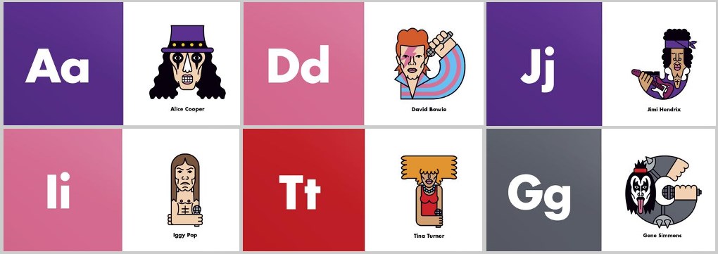Finies les aventures de Bébé Koala, P’tit Loup, T’choupi et autre Petit Ours Brun. Il est venu le temps de l’initiation aux vraies valeurs grâce aux illustrations de l’artiste Andy Morgan. Son abécédaire éducatif destinés aux enfants regroupe les stars iconiques de l’histoire du Rock. De A à Z, d’Alice Cooper à ZZ Top, les marmots pourront se familiariser avec Sprigsteen, Jagger, Bowie et les autres et acquérir ainsi la faculté de gueuler Rock’n’Roll bordel! Ce petit livre de 58 pages au format 158 x 158 mm x 26 mm est disponible pour 19.99€ chez The Andy Shop.