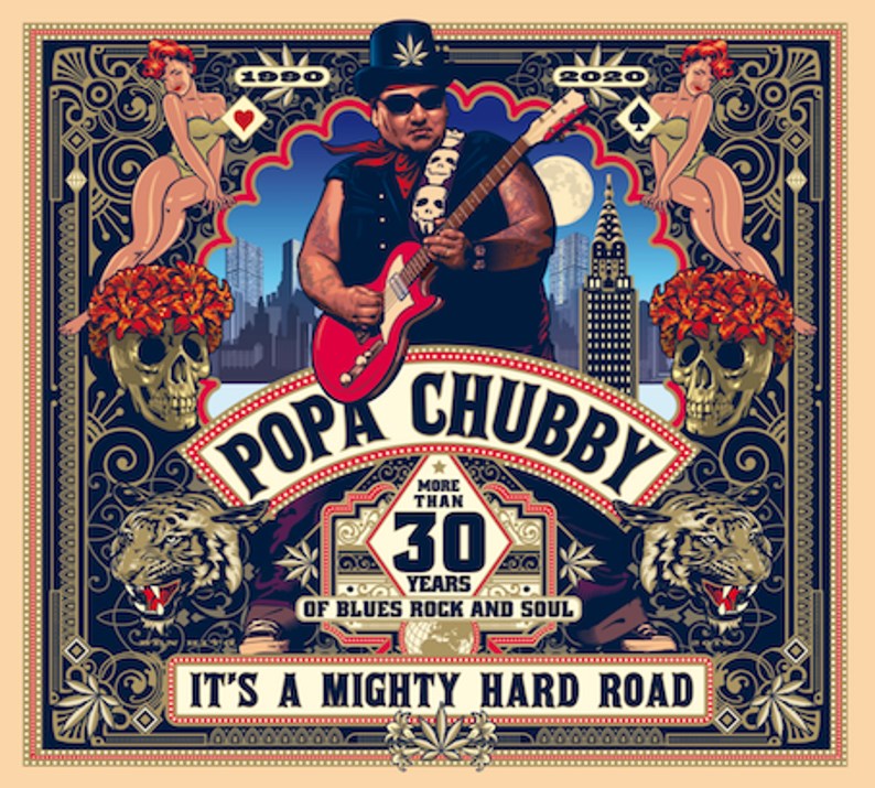 La couleur est annoncée et autant le dire tout de suite: aucune baisse de régime chez Popa Chubby. Le nouvel album, It’s a Mighty Hard Road, comporte pas moins de 15 titres pour un total d’une heure de blues, de rock et de soul avec, ça et là, des teintes jazzy et des influences latines. Toujours aussi inspiré, Ted Horowitz dévoile une fois de plus l’étendue de ses talents de chanteur, de compositeur, de mélodiste et surtout, de guitariste. ″La saveur est dans le gras″, c’est Popa qui le dit en ouvrant cette production. Pas de régime minceur pour une tambouille riche, variée et consistante qui invite à demander du rab. Sachant le géant du Bronx atteint d’un diabète invalidant (il marche avec une canne et assure ses prestations assis – NDLR), on aurait pu craindre le pire. Nous voilà rassurés, 30 ans de carrière célébrés avec un nouvel album qui prouve que les meilleurs arômes se développent après maturation. C’est un sacré voyage!