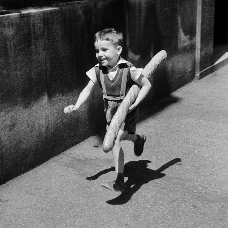 [ Source France Info ]: Selon Willy Ronis, ce cliché est le seul pour lequel il a demandé à son modèle de se mettre en scène. Le petit Parisien avec sa baguette dans les rues de Paris, c’est Jean Brosseron. A l’époque, en 1952, il avait 5 ans. Aujourd’hui, il se souvient comme si c’était hier que le photographe lui avait demandé de courir en sortant de la boulangerie. ″ Ravi de rendre service et de faire l’intéressant, j’ai couru avec ma baguette. Le monsieur a pris ses photos et ensuite, je suis rentré chez moi. Très fier, je l’ai dit à ma mère, mais elle ne m’a pas cru et m’a répondu : et moi, je suis la reine d’Angleterre ″ raconte, amusé, le septuagénaire.