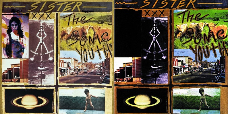 Pas de photo d’Avedon mais bel et bien un rectangle noir sur ma version éditée par le label anglais Blast First. Par contre la photo du Disney’s magic kingdom n’est pas recouverte d’un code barre mais feutrée d’une spirale. Les notes de pochette indiquent : « cover photos from public domain jacked from sonic matrix ».