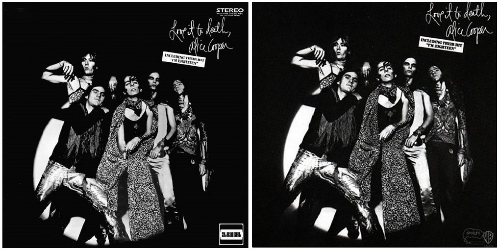 [Extrait]: Sorti en 1971, Love it to Death est sans conteste l’album grâce auquel tout a commencé pour Alice Cooper. Alors qu’avec les prédécesseurs Pretties for You et Easy Action le groupe de Vincent Damon Furnier flirtait sans réussite avec un rock Psychédélique expérimental, ce troisième album est l’annonce d’une métamorphose radicale due essentiellement à la présence aux manettes d’un nouveau producteur. Bob Erzin oriente le quintet américain vers une écriture et un son high energy, plus adapté à ce qui se faisait à l’époque du côté de Detroit avec les Stooges et MC5. Il s’occupe aussi de leur image en mettant en place un show théâtral et trash grâce auquel les prestations scéniques d’Alice et sa bande font l’objet de tous les excès. Dans une ambiance grand-guignolesque et une profusion de décibels, poupées décapitées à la hache, chaise électrique, guillotine, simulacre de pendaison, camisole de force et boa constrictor se succèdent durant les concerts qui révèlent néanmoins de réels talents chez les musiciens. Narrateur cynique et provocateur d’une Amérique sombre et déprimée, Alice Cooper devient une attraction et se voit désormais classé dans la catégorie Shock Rock… D’abord sorti sur le label de Frank Zappa, Love it to Death bénéficie d’un tel succès que Warner Bros Records rachète les droits, offre un nouveau contrat au groupe et ressort l’album en exigeant toutefois une modification du cover art. En effet, l’illustration originale de la pochette montre une photo en noir et blanc du combo au milieu duquel le leader déjanté donne avec son pouce l’impression d’exhiber son pénis. L’image sera donc retravaillée afin que l’outrance soit cachée par la cape du chanteur. Au final, ce nouvel opus sera pour Alice Cooper celui d’une reconnaissance internationale méritée et confirmée dans la foulée par Killer la même année, School’s Out en 1972 et Billion Dollars Babies en 1973. C’est aussi et surtout l’album qui contient le premier gros hit du groupe: I’m Eighteen!