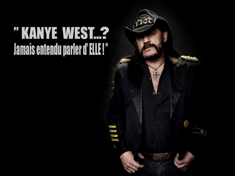 ″ Kanye West? jamais entendu parler d’ELLE!″ – Une façon pour le leader de Motörhead d’exprimer sarcastiquement, au cours d’une interview, son mépris à l’égard du Rap et de l’une des figures de proue du genre!