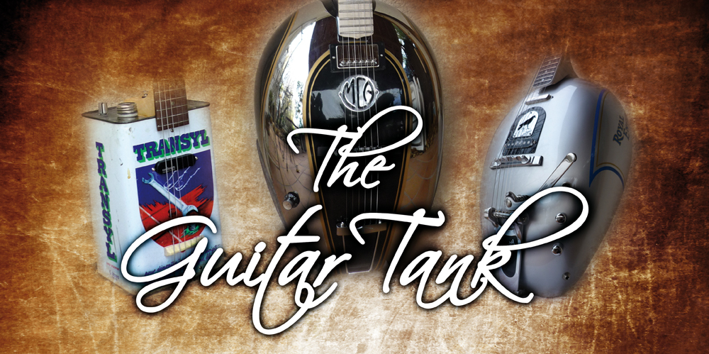 ″ Pour moi la musique est indissociable de la moto, toutes deux me procurent le même sentiment de liberté ″. Voilà déjà belle lurette que Joël Gruau a fait sienne cette maxime de Francis Zegut. Chez les Gruau le travail du bois relève de la tradition familiale. Pas étonnant que le petit dernier soit très tôt imprégné des exhalaisons de sciure et de copeaux en provenance de la menuiserie. En grandissant, Joël découvre la musique et se passionne pour le Blues Boom anglais, à l’époque accompagné d’un terrible virus identifié sous l’appellation de Motocycletum Vrombitus. Bsa, Norton et autres Velocette font désormais partie d’un quotidien infectieux qui se traduit chez l’adolescent par de fortes démangeaisons au niveau de la guitare. Ce n’est que bien plus tard, et grâce à l’absorption de doses massive de rêves, de passion et de délires, que la rémission s’installera. Devenu luthier, Joël Gruau exerce aujourd’hui son talent au travers d’un art pour le moins particulier. Il a fait sienne l’union technique, à priori improbable, entre moto et musique. Entre ses mains le moindre bidon d’huile ou de dégrippant devient un Ukulélé ou un ″Bidonlélé″ et des réservoirs de Norton, d’ Enfield, de Terrot ou de Trophy connaissent une deuxième vie sous la forme de guitares ou de basses. Même si à l’occasion des emballages de Jack Daniel’s, de biscuits, de cigares, ou de bonbons, se voient dotés de pouvoirs résonnants ne vous y trompez pas; l’ Artiste, non content de concevoir, réparer, restaurer ou régler tout ce qui en pince pour les cordes, excelle aussi dans la facture d’instruments disons plus classiques. Il a réalisé sa première Les Paul en 1989, sa SG en 92 et il conçoit encore et toujours dobros, basses et autres acoustiques, guitares de jazz manouche comprises. Qu’ils soient bidons, réservoirs, imaginés ou inspirés de l’histoire tous les projets sont menés au fil de l’impulsion créatrice et/ou de la demande des clients, qu’ils soient amateurs, professionnels ou simples collectionneurs. Pour la petite histoire… Jacob Desvarieus de Kassav possède la Bidon Castrol GTX; la Cavaquino Yacco et la basse bidon une corde ont été commandés par Yvan Talbot et Johnny Depp s’est vu offrir un Bidonlélé Esso acheté dans l’atelier de Villeneuve St Georges où même Frank Margerin est à l’honneur. Avec la ″Lucien″, magnifique résé de Sportster dédicacé, Monsieur Gruau fait coup double car il rend hommage au dessinateur tout en gardant le contact avec le monde de la moto. Un bon moyen de compenser car Il faut dire que son quotidien et les projets à venir (une guitare à partir d’ une roue rayonnée de mini moto) ne lui laissent guère le temps de sortir son 500 Bullet. Vous êtes sur la réserve? Faite le plein de notes sur le site de ce créateur de génie. Ici vous trouverez l’accord parfait, notamment en parcourant les étapes de fabrication de ces instruments exceptionnels.